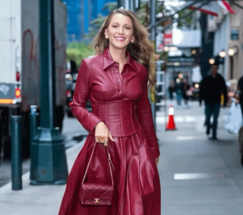 Blake Lively shkëlqen me fustan-këmishë lëkure bordo në Nju Jork, mes zhvillimeve në çështjen gjyqësore