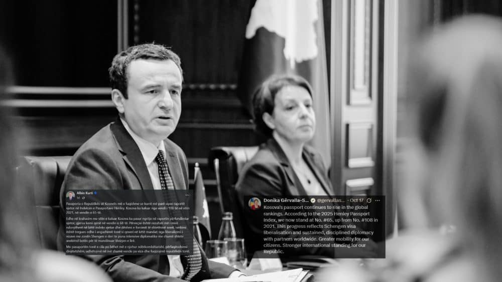 Në një valë autopromovimi, deputetët Albin Kurti dhe Donika Gërvalla publikuan posterë shumëngjyrësh për “suksesin historik” të pasaportës së Kosovës në Henley Passport Index 2025. Sipas tyre, ngjitja nga vendi i 108-të në të 65-in është dëshmi e “punës intensive diplomatike” për lëvizje të lirë. Por çfarë tregon në të vërtetë ky indeks?