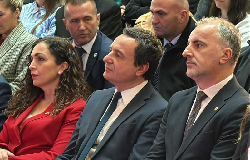 Gjatë një ceremonie në Universitetin e Prishtinës, rektori Arben Hajrullahu dorëzoi çmimin “Alumni i Nderit i Universitetit të Prishtinës” për presidenten Vjosa Osmani dhe për kryeministrin në detyrë, Albin Kurti.