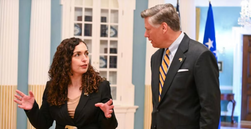 Presidentja e Kosovës, Vjosa Osmani, takohet në Uashington me zëvendëssekretarin amerikan të Shtetit, Christopher Landau. Lajmi është konfirmuar nga Departamenti amerikan i Shtetit përmes një njoftimi zyrtar. Nuk janë dhënë detaje shtesë për temat e diskutimit në takimin që mbahet pasdite, sipas orës lokale të Kosovës.