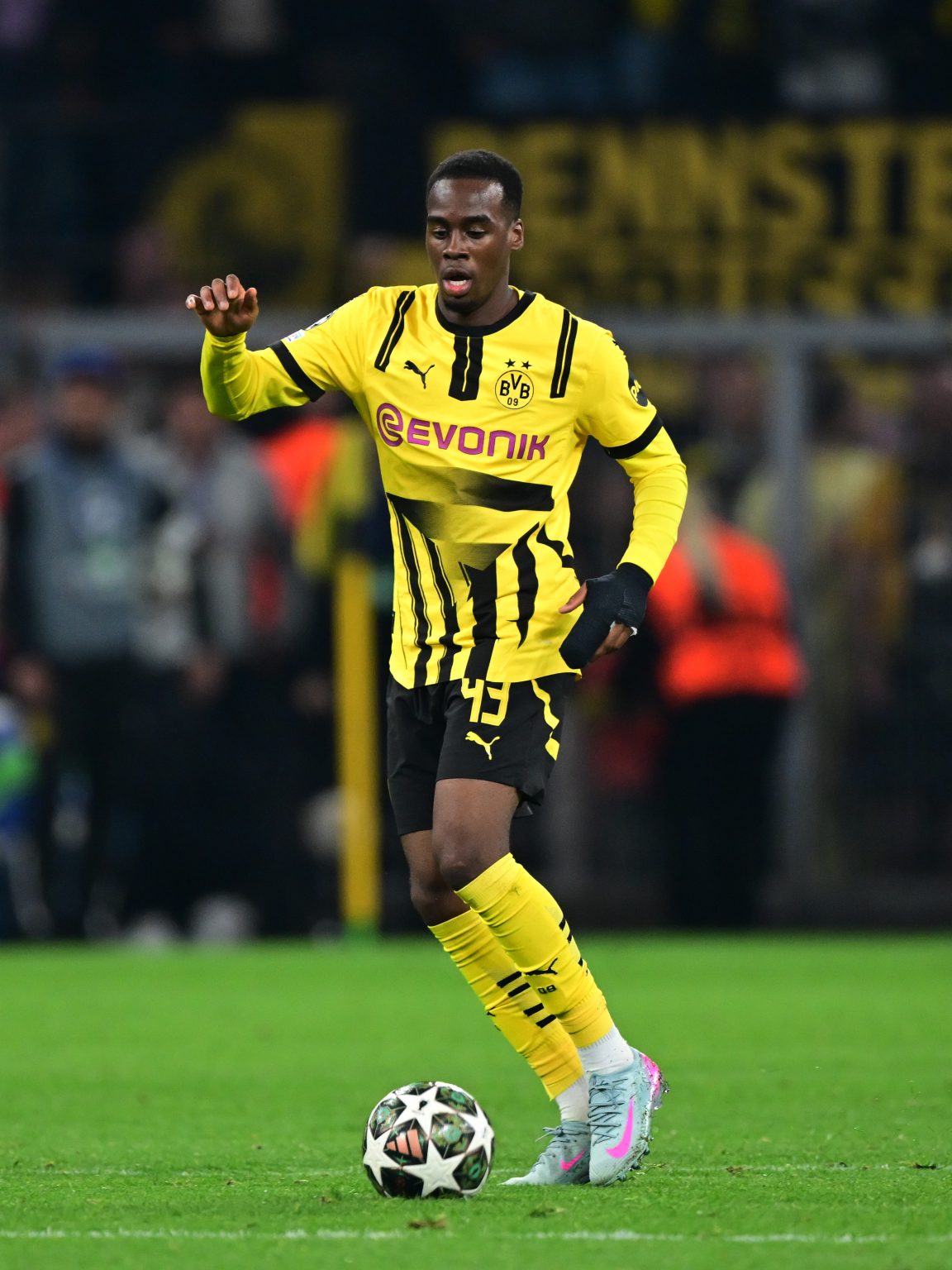 DORTMUND - Jamie Bynoe Gittens of Borussia Dortmund during the quarterfinal Champions League match between Borussia Dortmund and FC Barcelona at Signal Iduna Park stadium on April 15, 2025 in Dortmund, Germany. ANP | Hollandse Hoogte | GERRIT VAN KEULEN (Photo by ANP via Getty Images)