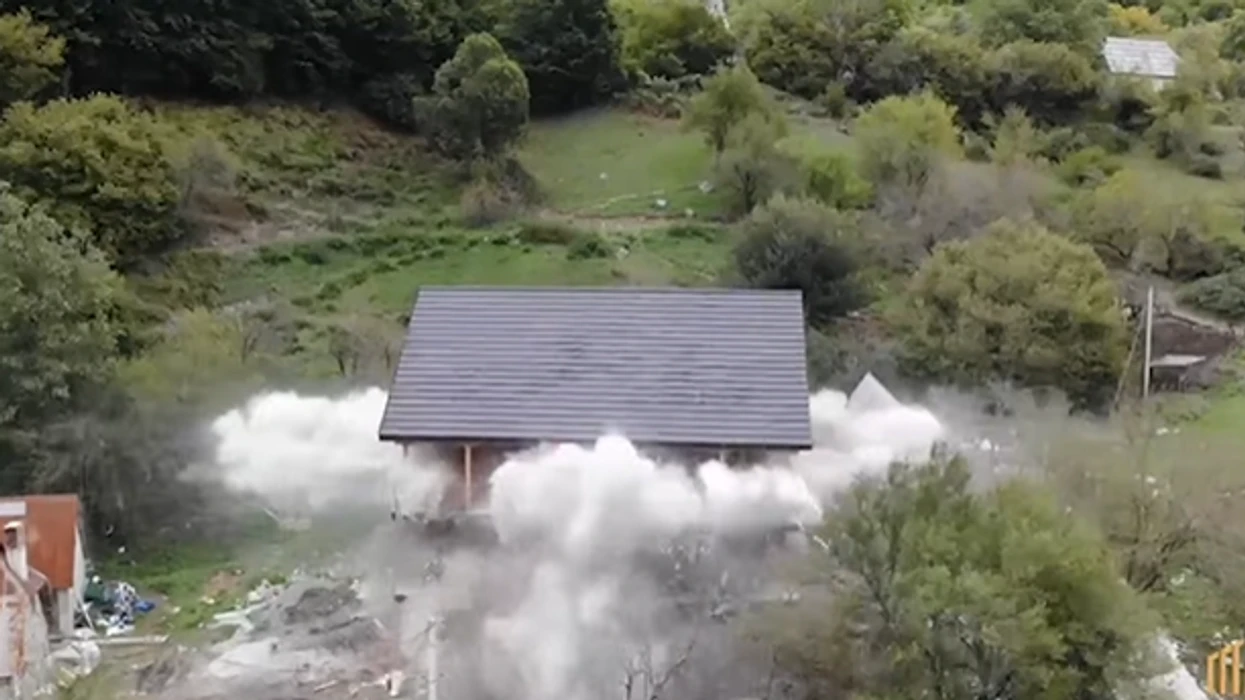 Në Shqipëri po vijon fushata për lirimin e hapësirave publike. Si pjesë e këtij operacioni, në Theth është rrëzuar me tritol një ndërtesë, dhe pamjet janë bërë publike nga autoritetet.