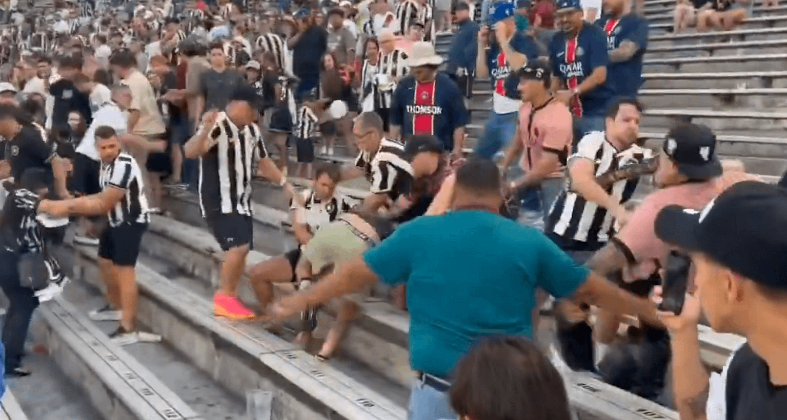 Dhuna shpërtheu në tribunat e stadiumit ikonik Rose Bowl në Kaliforni, ku rreth 25 persona u përfshinë në përleshje. Skena të shëmtuara përfshinë dy parizianë që sulmuan një mbështetës të Botafogo dhe vazhduan edhe pasi ky i fundit ra në tokë. Të tjerë tifozë i ndaluan, përpara se një burrë me bluzë të Botafogo sulmoi ata.