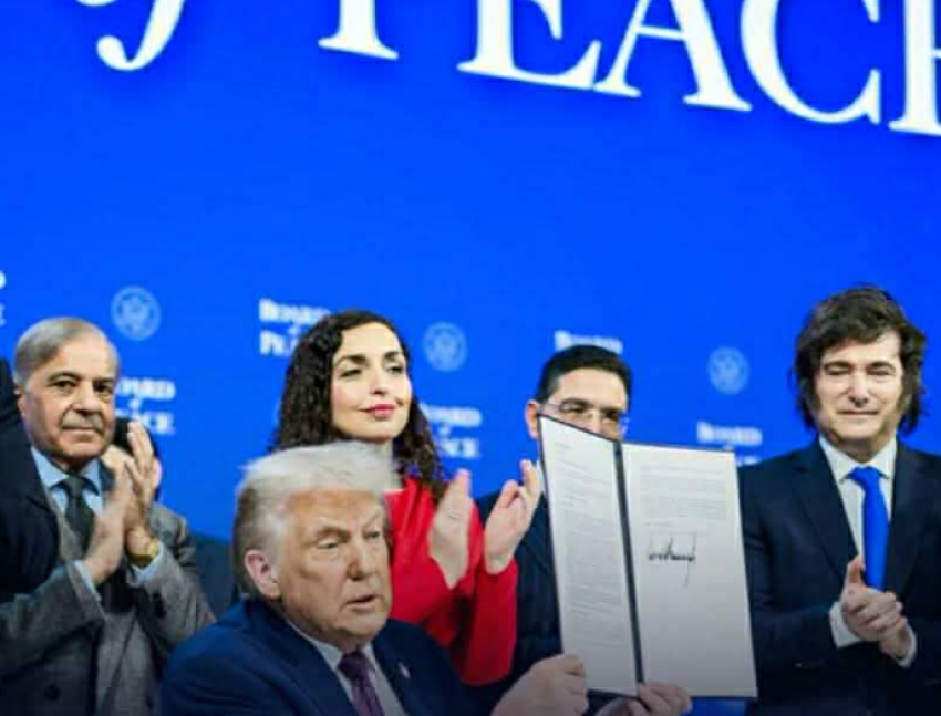Faqja zyrtare e Shtëpisë së Bardhë në platformën X ka shpërndarë një fotografi ku presidenti amerikan Donald Trump shfaqet i rrethuar nga udhëheqës të tjerë. Menjëherë pas tij duket edhe presidentja e Kosovës, Vjosa Osmani, e cila ishte ndër nënshkrueset e Kartës së Bordit të Paqes.