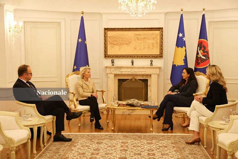 “Kosova është gati të ecë përpara me përkushtim, me reforma të suksesshme dhe me besim të palëkundur në të ardhmen evropiane. Kënaqësi e veçantë ta mirëpres sërish sot në Republikën e Kosovës Presidenten e Komisionit Evropian, Ursula von der Leyen. Së bashku diskutuam për zbatimin e Planit të Rritjes, për rëndësinë e heqjes së masave të padrejta ndaj vendit tonë, si dhe për hapat tutje në rrugën drejt integrimit tonë në Bashkimin Evropian. Mbështetja e Komisionit Evropian për Kosovën në këtë proces mbetet thelbësore”, shkroi Osmani.
